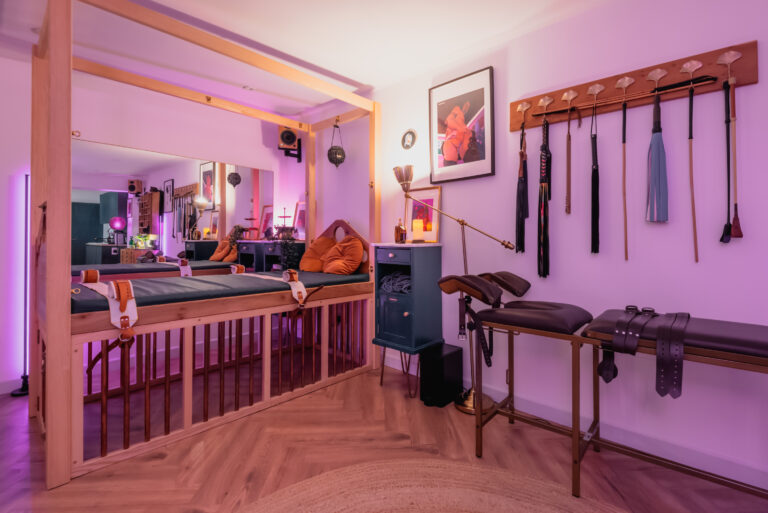 We invite all to come and play in our cosy, sensual BDSM studio, brimming with nature magic. Available to hire and book online for couples, small groups, workshops and professionals. Both experienced players and those new to BDSM come through our doors and especially appreciate Amanita Studio for its unique sensual, welcoming atmosphere which stands out from traditional fetish aesthetics.